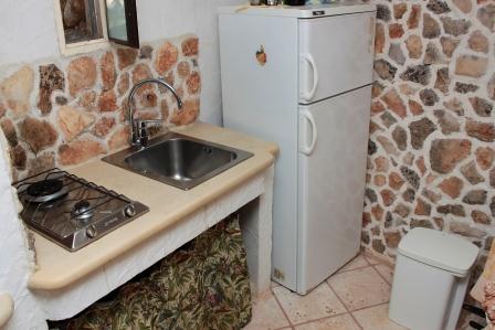 Trullo (4/5 posti letto): costituito da 3 nicchie in cui sono collocate le 3 camere da letto, che si affacciano (separate da tende) sul vano principale che funge da sala da pranzo; in due altre cavità distinte sono state realizzati la cucina e 1 bagno con doccia. Dotato di aria condizionata e lavatrice. All’esterno ampio patio porticato attrezzato con mobili da giardino.